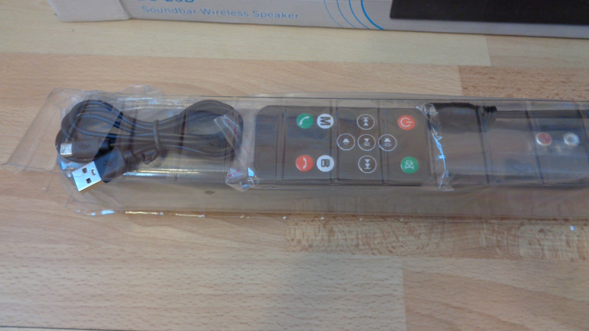 barre de son, pour Home cinéma, 3D, basse, caisson de basses, avec ligne RCA, télécommande Avec 4 haut-parleurs créant un son surround stéréo 3D, l’effet est absolument choquant. Prise en charge de la connexion bluetooth, compatible avec la plupart des appareils bluetooth, pour une lecture sans fil pratique. Peut également lire l’audio d’un smartphone ou d’un autre appareil via le câble audio. Processeur de son DSP intégré avec un son clair et sans bruit. Il dispose d’un voyant LED et d’un bouton sensible, beaucoup plus facile à utiliser pour les utilisateurs. Design exquis avec coque en plastique technique, convient à toute décoration de maison. Couleur: noir Bluetooth: 4.0 Charge: microUSB 5V/1,5a Batterie: batterie polymère Rechargeable (3.7V, 2000mA) Sortie: 4Ω Puissance: 4x5W Fréquence: 20Hz-20KHz Fréquence de Transmission: 2.48GHz Distance de Transmission: 8-10 mètres SNR: ± 80db