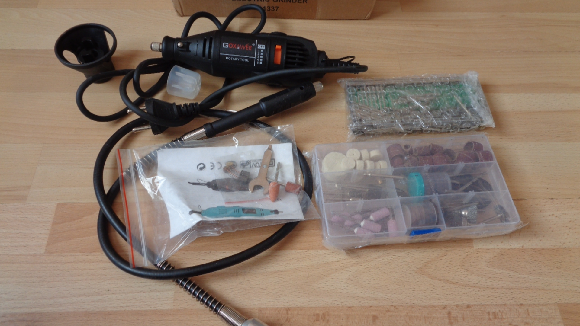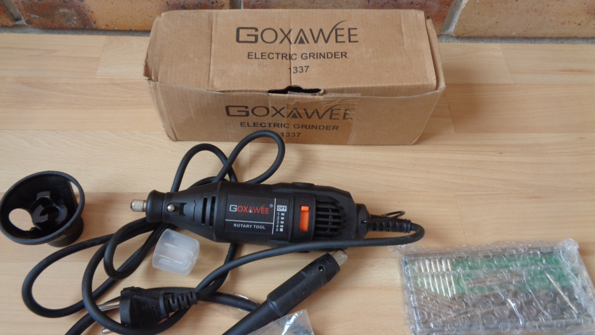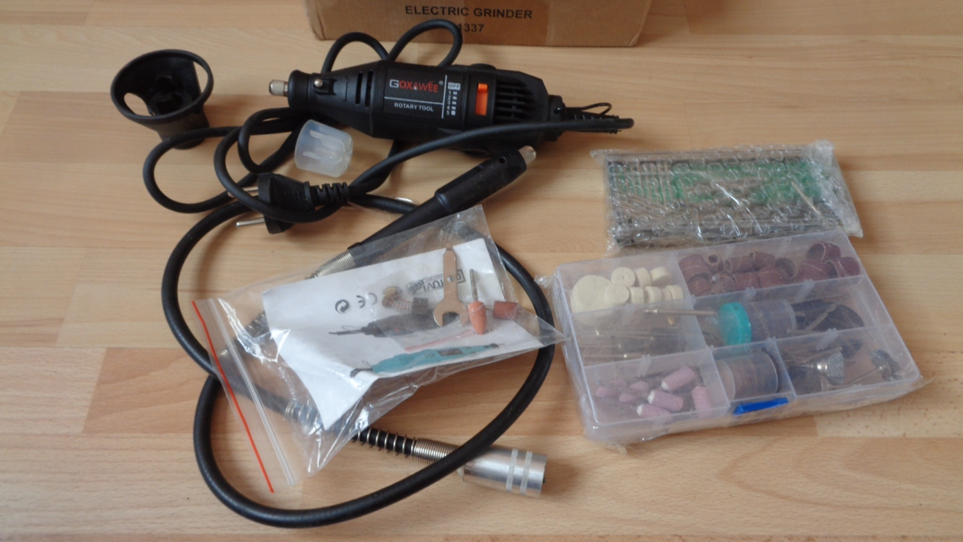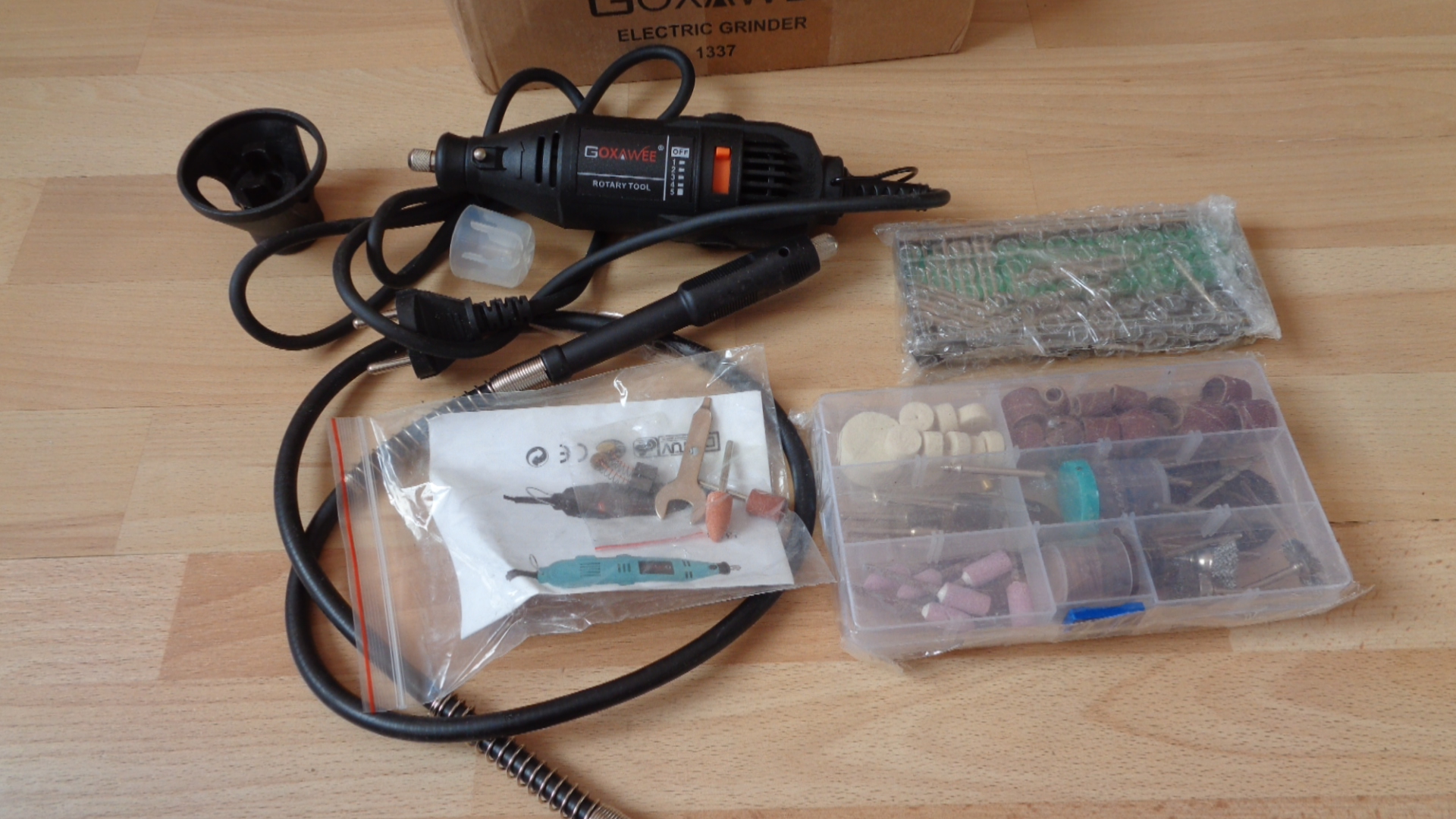 2330 –Meuleuse , perceuse électrique à vitesse réglable goxawee 130 w avec accessoires neuf